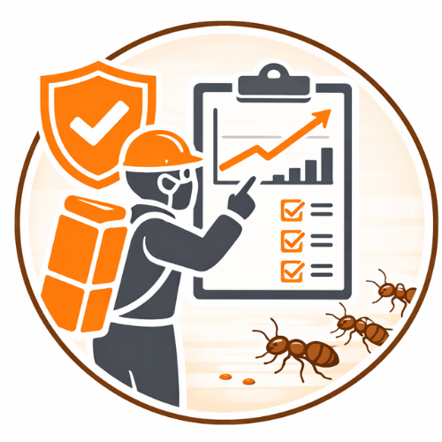 Plan de traitement adapté au type de fourmis, à l’environnement (résidentiel ou commercial) et au niveau d’infestation, avec des produits homologués appliqués selon les consignes.